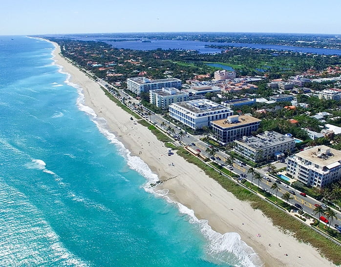 West Palm Beach şehri, Florida Palm Beach’ in güneydoğusunda, Worth Gölü’nün batı kıyısında, Miami’nin yaklaşık 105 km kuzeyinde, bariyer adasında ve şehrin karşısında yer alıyor.
